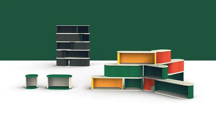 The result is P.O.P.U.P, a collection of shelving systems, modular screens and chairs that Mr Yong designed in collaboration with Superstructure, a build lab that explores new digital fabrication techniques and material systems management.