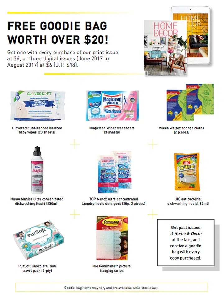 Purchase our magazines at the fair and receive a goodie bag with attractive freebies worth over $20!