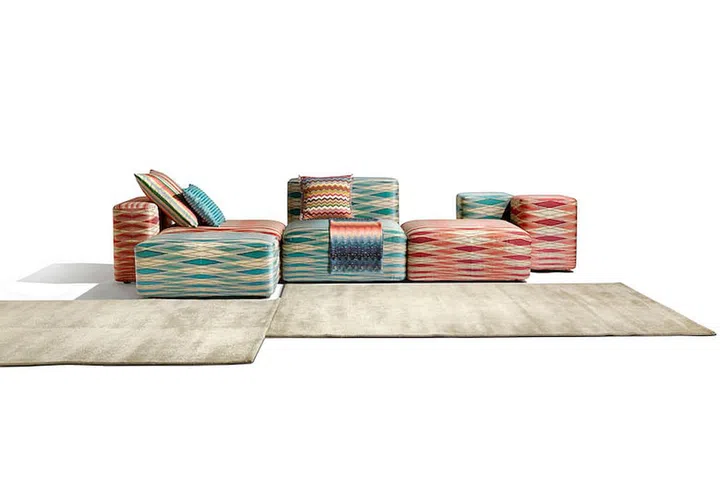 Selected poufs and soft furnishings are available at the Missoni store. Sofas and other designs are available for special order.