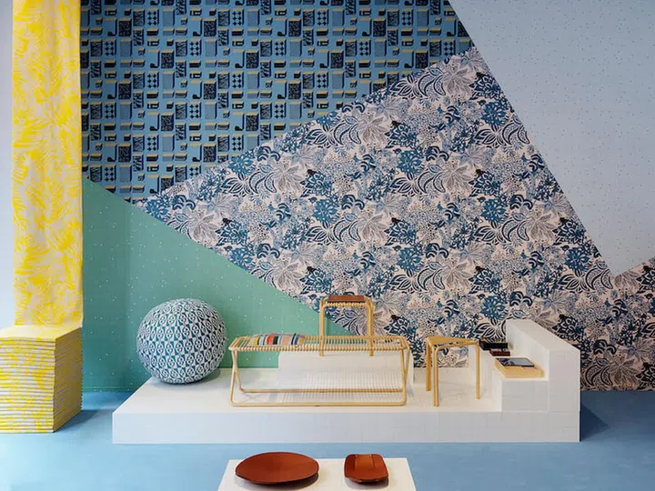 boxes, to cashmere throws and wallpaper. The collection juxtaposes nature-inspired prints with geometrical lattices and mosaics, all rendered in soothing hues and seamless design.