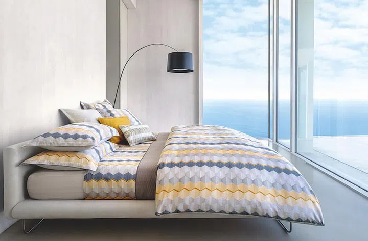 of downy bedlinen, made with 100 per cent Egyptian, 300 thread-count cotton. The abstract print will also appeal to sophisticated art lovers - Oceanwaves takes inspiration from Japanese prints and Volumn from Brancusi’s sculpture Endless Column.