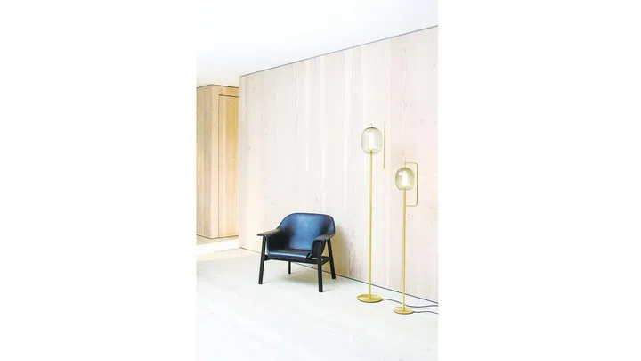 Despite its simple appearance, this lamp will be a conversation starter. The work of design practice neri&hu, the tinted glass shade is a modest attachment that branches off the main support to gently shield the light.