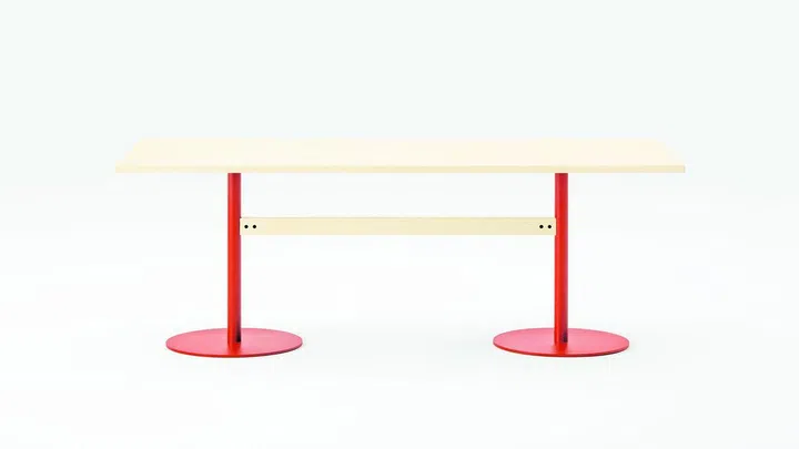Designed by Jasper Morrison, this dining table wins fans over with its use of wood for the table top and steel for its legs. Also available in the collection are matching stools and chairs.