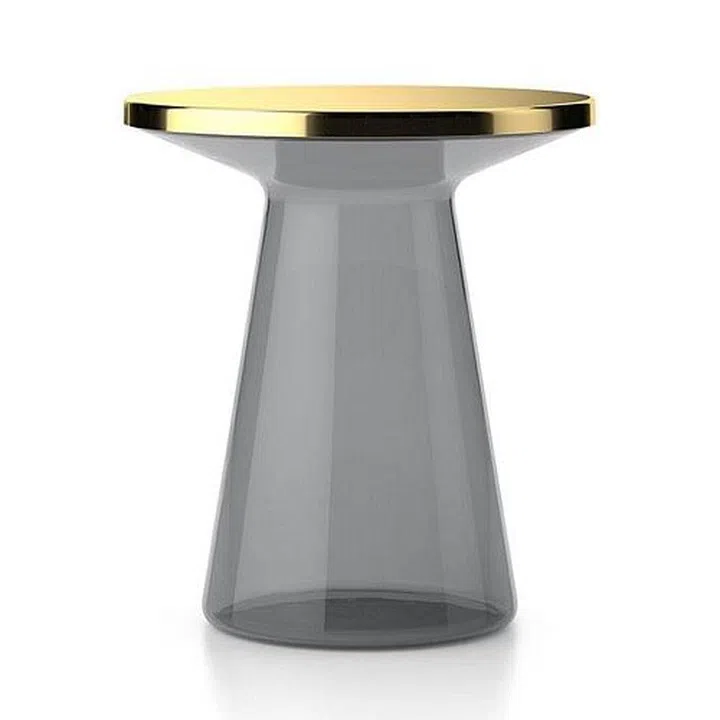 If you're looking for a side table that has brass surfaces that won't look too opulent, the Figure side table is your answer. Its fluidly designed body is made of mouth blown glass and contrasts perfectly with the top in copper.