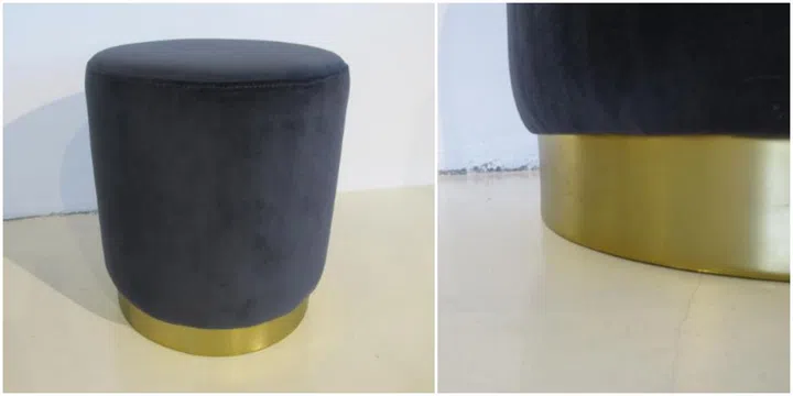 For added seats in your home, this velvet pouf and its distressed metal base will serve its purpose while complementing the overall look in your home.
