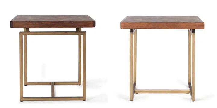 Whether placed front- or side-facing, the Bruno end table (which is a great bedside table!) lends a unique appeal with the leg designs and herringbone patterned top orientated differently. This adds flexibility when you want to change up the look in your bedroom subtlely.