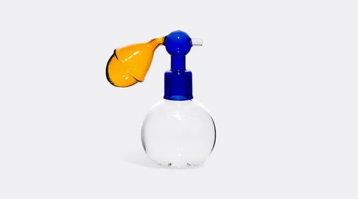 You could get an atomiser that actually spritzes, but we like this mouth-blown glass one that still belongs on the vanity.