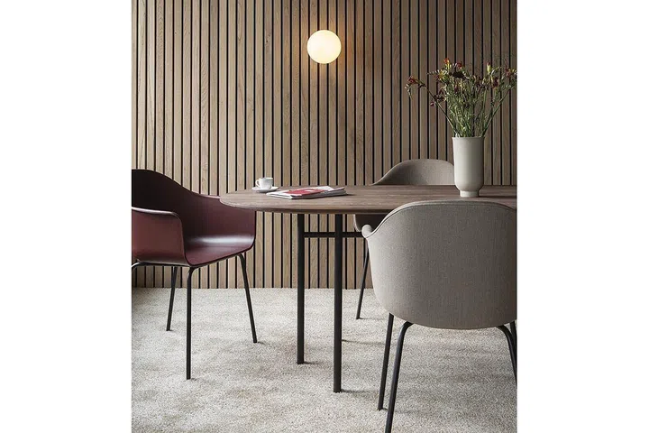 Play with the different shades of red, such as the Menu Harbour chair in burned red ($498). Its sleek form is super easy on the eyes too!