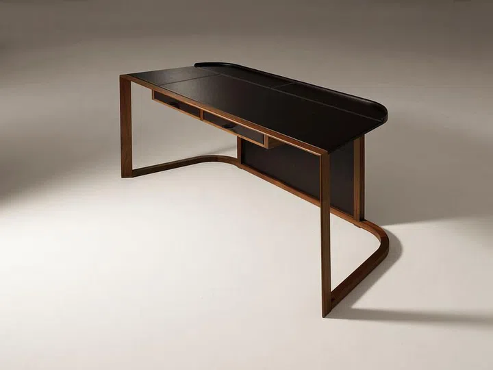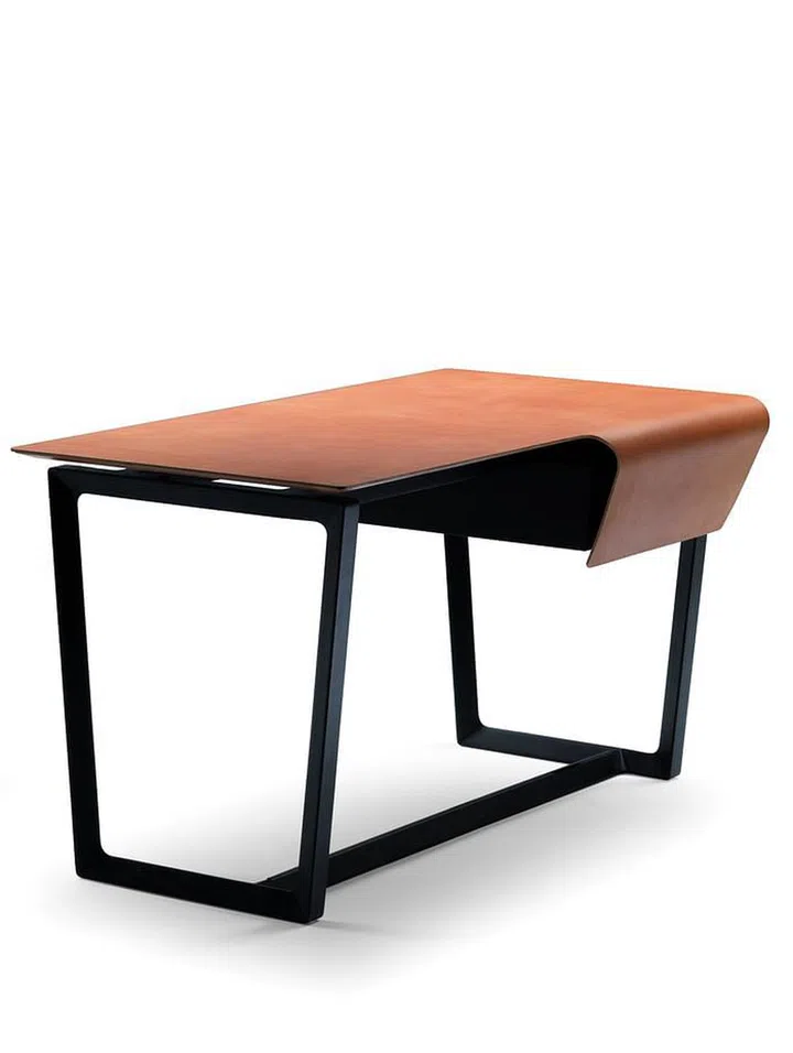 1) The Fred desk from Poltrona Frau, a heritage brand known for its leather furniture, is both structured and organic in form. The leather writing surface curves downward without any internal support, to form a discreet storage space. Its legs and soft-close drawer are made with solid ash wood.