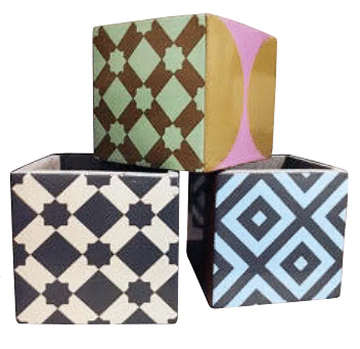 4) Whether it’s for stationery or cutlery, the geometric designs on these concrete holders will make good tabletop accessories. Found at HomesToLife.
