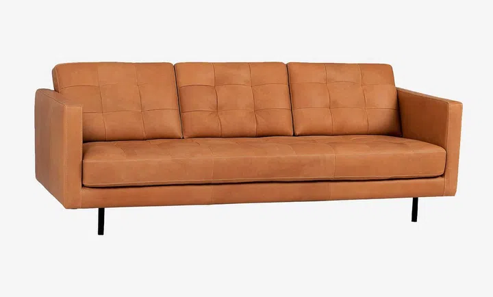 Select from a range of designs — including the Arya sofa (pictured) — and customise them to your own leather and colour preference.