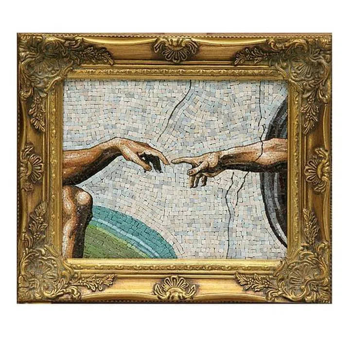 Enshrine and honour a fragment of the Italian renaissance with this mosaic piece depicting The Creation of Adam fresco by Michelangelo.