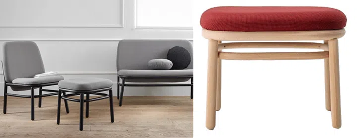 The design of this ottoman is inspired by Japanese architecture, with its form and curve mimicking Irimoya rooftops.