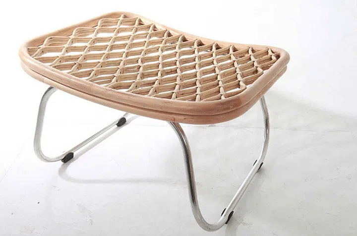 Intricately crafted with the use of rattan, this stool embraces the art of traditional rattan weaving.