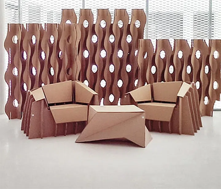 Cardboard furniture by Bartholomew Ting, Tri-Wall Creatives. Also available at www.butternmilk.com.