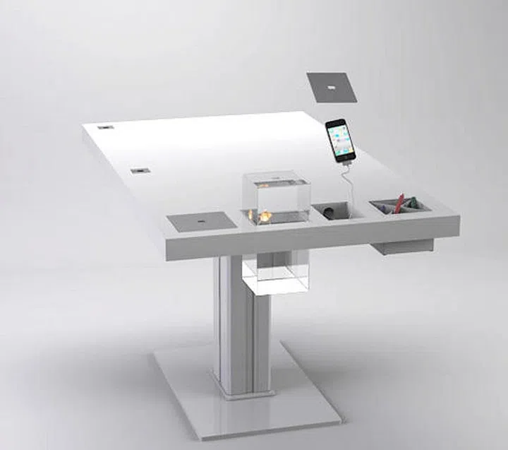 MILK desk by Danish designer, Søren Rose Kjær. This table, with compact storage options, can also be height adjustable electronically so you choose to stand or sit while you work.