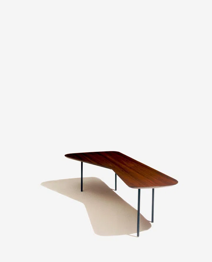 The Model 108 coffee table, introduced to the Knoll catalouge in 1948, reflects the playful spirit of its designer, Alexander Girard, which was injected into the piece’s austere modern vocabulary.