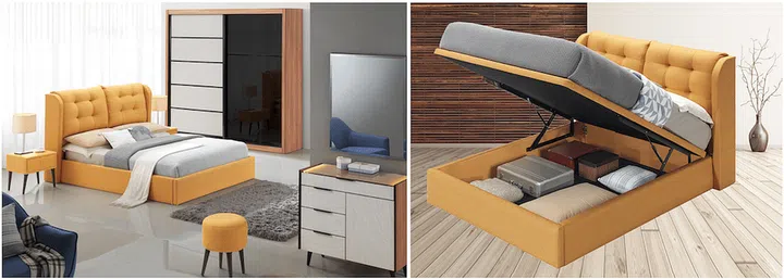 Of course, keeping it neat will also help calm your mind. Add storage with the Sunshine yellow storage bed from Fullhouse Home Furnishings (#03-52). You’ll have extra space to store household items like the vacuum cleaner and ironing board, yet be able to access them easily and conveniently.