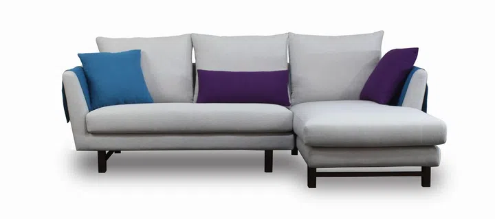 V Outlet carries the Alison sofa, which has ultra-slim armrests and long back cushions, creating comfortable sitting positions. The wooden legs contrast with the light-coloured fabric, giving the piece a modern Scandinavian look.