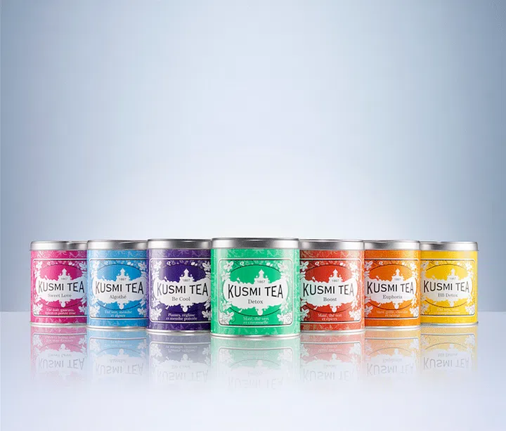 KUSMI TEA, AVAILABLE IN LOOSE TEA LEAVES OR TEA BAGS, IS AVAILABLE AT TAKASHIMAYA D.S., BASEMENT 1, AND WWW.KUSMITEA.COM.
