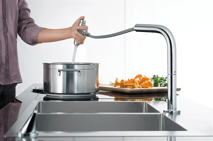 Hansgrohe’s latest range of kitchen accessories is aimed at combining design and function, to offer homeowners a more intuitive way of working in the kitchen space. To achieve this, the brand has designed a water control unit that is placed at the front right-hand side of the sink rim, and is separated from the tap. This new Hansgrohe Metris Select two-hole kitchen mixer has an ergonomically shaped lever handle that can be switched to your desired temperature and water volume, and kept that way throughout. Water flow from the mixer can then be turned on or off by simply pressing the Select button on the spout. There’s even a pull-out spray incorporated into the mixer so you can easily reach corners of the basin.