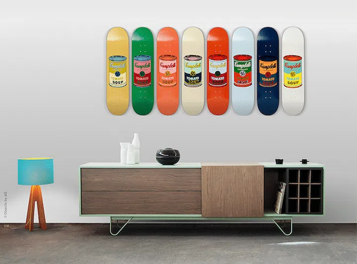 Give your guests something to talk about when they pop by, with these hip and trendy art pieces featuring works by well-known contemporary art legends like Andy Warhol and Jean-Michel Basquiat. Art gallery Lumas collaborated with The Skateroom to incorporate the world-renowned artworks onto skateboards that come in bright, vibrant pops of colour. Put up one of these priced skateboards, featuring Warhol’s Campbell’s Soup Cans, and Basquiat’s Trumpet, in your home to lend it a fun, cool vibe.