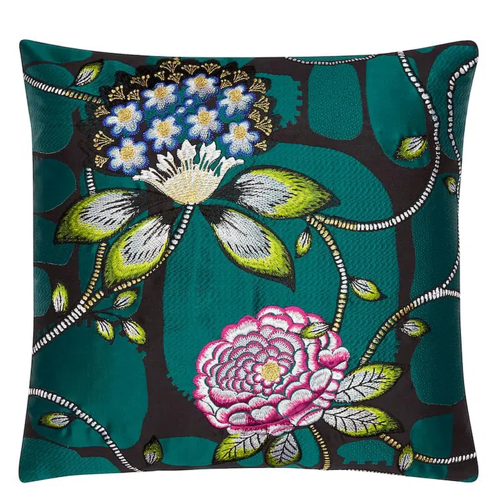 The Les Rosales Bleu Paon cushion is priced at 129 euros (S$196). Find out more at www.designersguild.com.