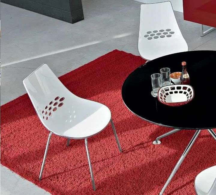 Architecture and design studio Archirivolto designed the Jam chair for Italian furniture label Calligaris. The studio prefers to work with materials such as aluminium and plastic, while the brand is known for its wood pieces. However, Calligaris began working with other materials as a means of innovating, and Archirivolto became a frequent collaborator. An earlier design from both companies, the Alchemia, is a lightweight and stackable plastic chair with a backrest that resembles atoms.