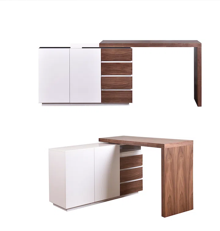 If you often entertain and have guests over, have sufficient countertop space to cater to the party! The Agilis extendable coffee table from Zen Tradition (#03-21) may appear small, but slide out additional work tops on both sides and there’ll be enough space for all. Available in ash veneer in rose walnut stain, its elegant wood finish matches perfectly with any contemporary home.
