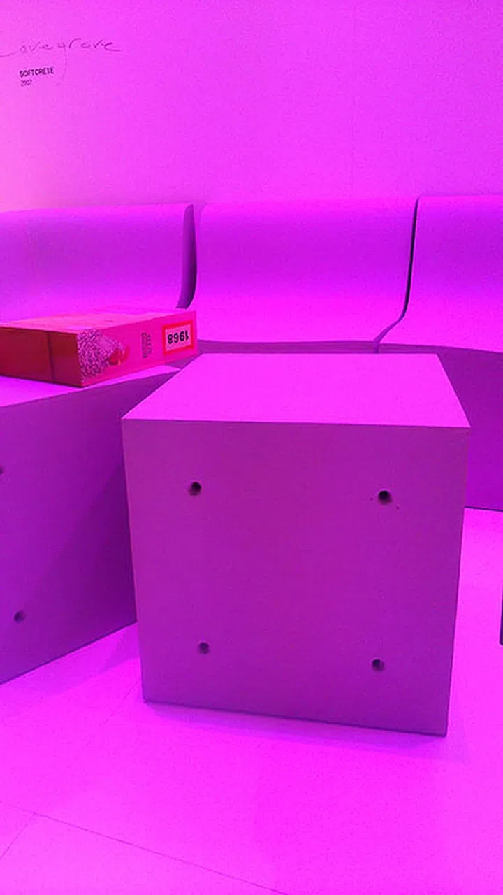 Everything from GuframSoftcrete modular sofaMagnolia poufThe pink lighting at the stand changed the complexion of the Softcrete modular sofa by Ross Lovegrove, which looks like blocks of concrete but are actually made of bouncy foam. New also this year are the Magnolia and Hortensia pouffes by Marcel Wanders.