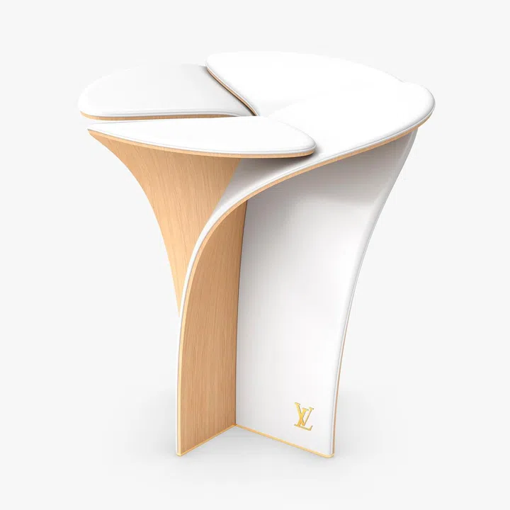 The Blossom stool is available in a metal edition, in which the entire chair is gilded in brass. You can order it at any Louis Vuitton Boutiques.