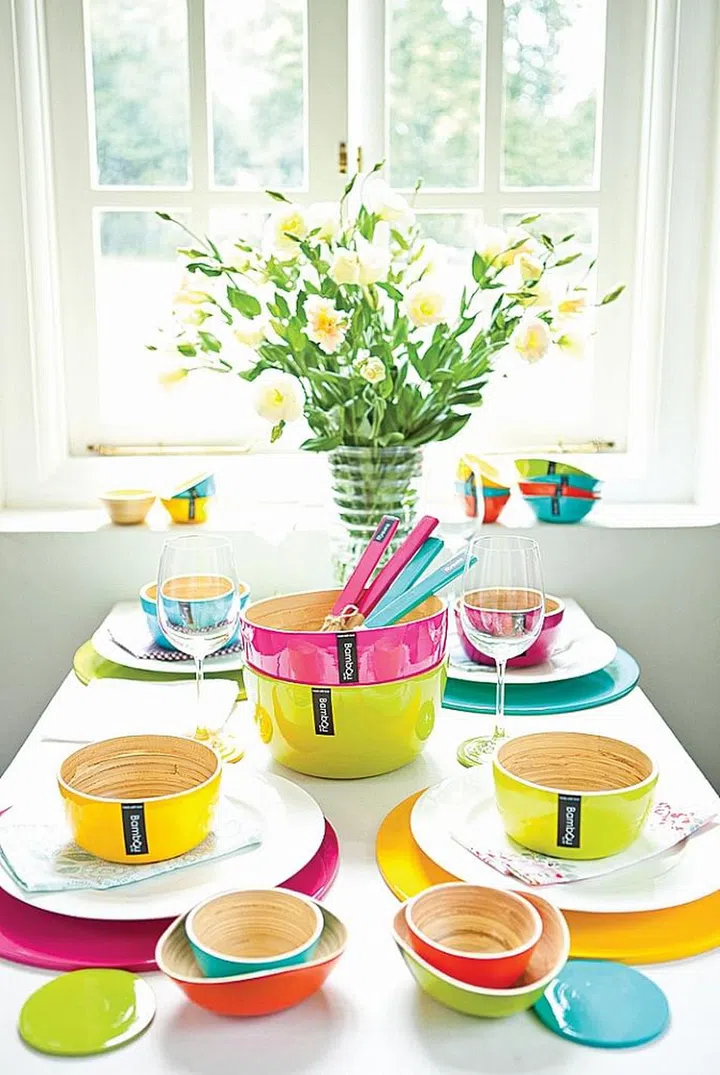 Find a selection of bamboo furniture accessories, such as bowls, plates, serving trays, vases and tissue boxes. Feel free to scatter the colourful items around the house (think mail tray, jewellery dish); alternatively, all of the entertaining pieces are food safe, as certified by international testing standards.