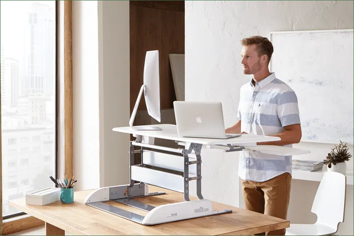 Invest in Varidesk’s height-adjustable Sit Stand Desk Converter, which gives you the option to work while standing up. This simple change is likely to help boost metabolism, prevent sitting-related health issues, and even possibly lead to increased productivity!