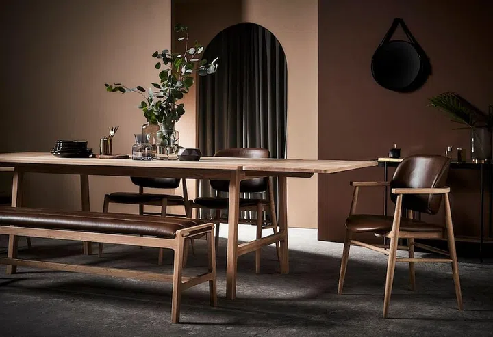 The most common shape of all - rectangular dining tables are ideal for homeowners that often like to host because they can seat a large number of guests for large-scale entertaining. Their linear shape also allows for ample room to walk around the table. However, this shape can also be big for tight spaces with the addition of chairs. Work around this by opting for long benches instead of chairs, which allow you to push them under the table when not in use to create more space.