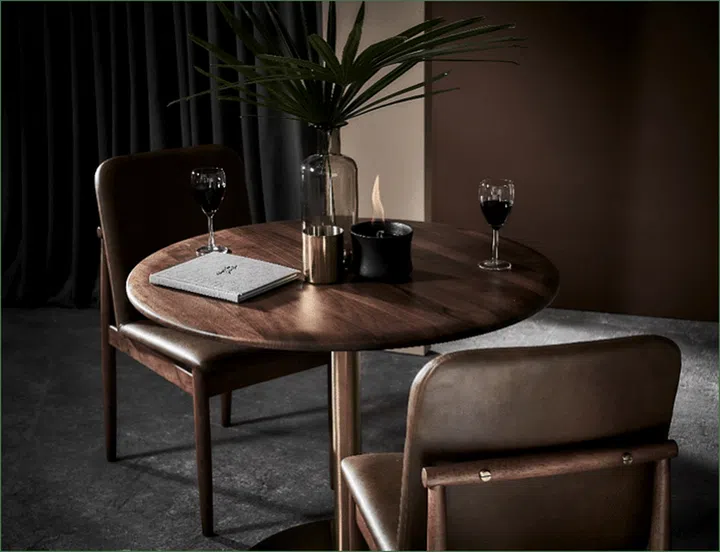 (Photo: Sporting a mid-century inspired silhouette, the Scotch dining table in solid walnut and brass-finished legs, reimagines the classic bistro or café table in a clean-lined, contemporary way.)