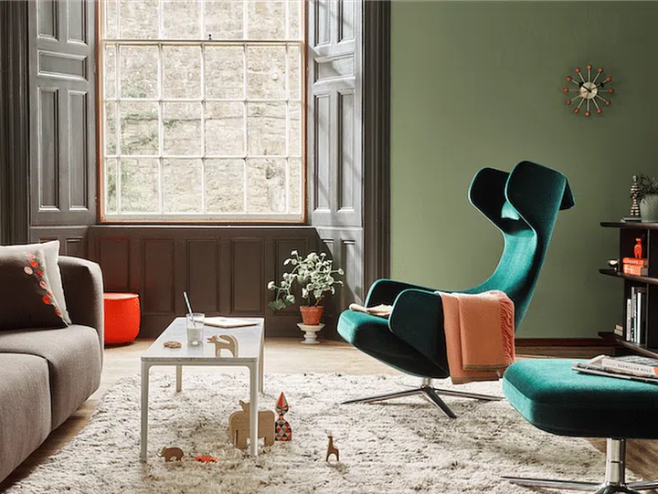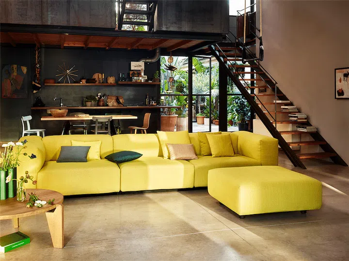 For your living room, choose an outstanding statement furniture piece, such as the Vitra Soft Modular sofa in bright yellow, designed by Jasper Morrison. It’ll definitely add a vibrant and cheerful look to the interiors.