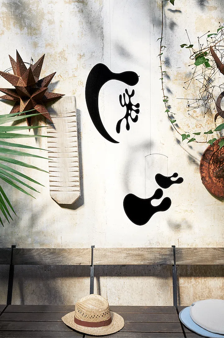 And maybe, instead of paintings on the walls, add a fun abstract art installation, like the Plywood Mobile designed by Charles and Ray Eames.
