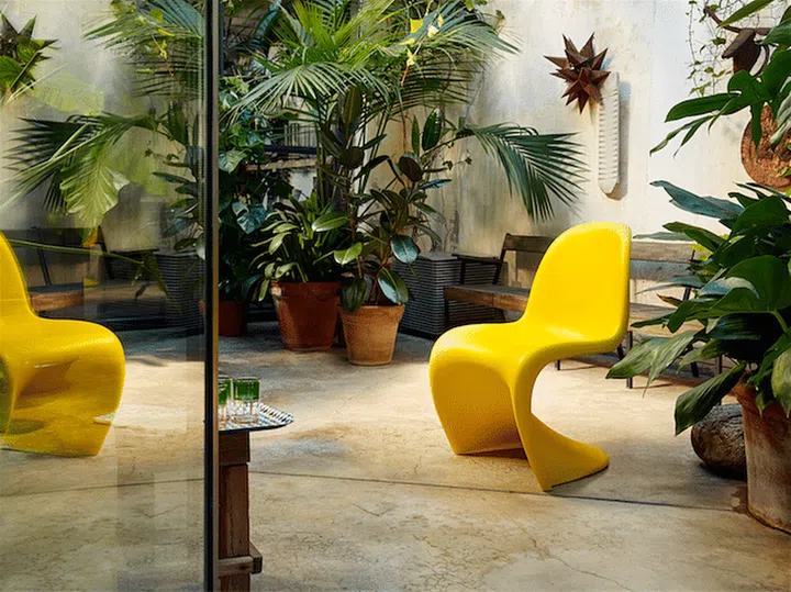 Embrace curvy designs in the dining room too, with the Vitra Panton chair. They come in bright hues like yellow, orange, red and pink — a perfect way to add accent pieces in a neutral-palette home!