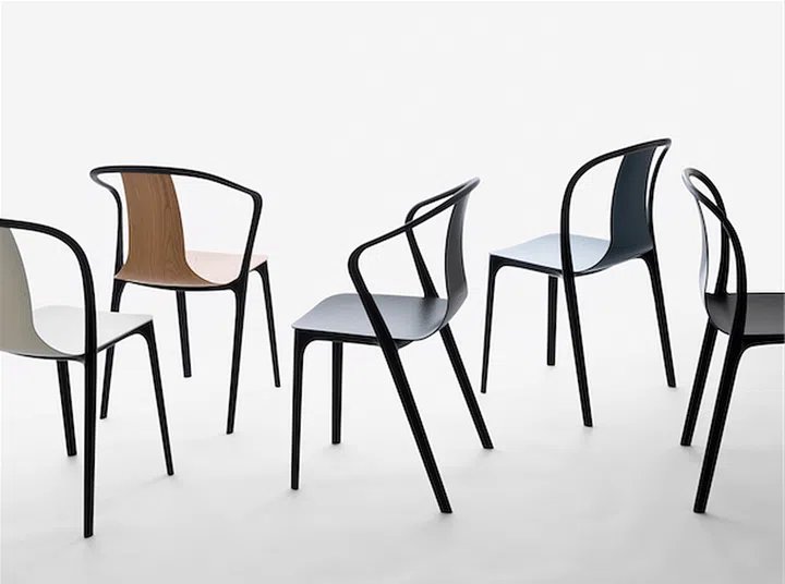 Pictured: Belleville chairs are perfect both as indoor and outdoor furniture, especially with their sleek design by Ronan and Erwan Bouroullec. They are available in finishes such as plastic, wood leather and fabric.