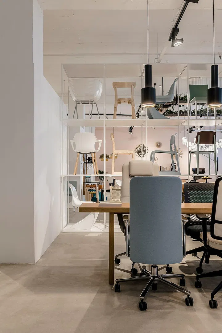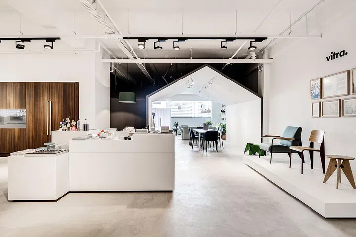 Opened in partnership with local retailer W.Atelier, Vitra also purveys artistic light installations from brands such as Artek and Lasvit.