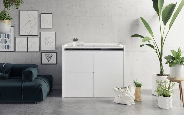 As apartments get smaller, explore innovative designs to make the most out of your limited floor space. Swiss kitchen brand Kitchoo has designed compact kitchen systems to suit this need. The K5 Kitchoo set is just 1.3m wide with a depth of 0.65m, yet it manages to fit a sink and retractable mixer, touch- panel induction hob, dishwasher, mini fridge and freezer, and washing machine, with enough table space for an integrated acrylic resin counter. This set can also be delivered assembled, fully equipped and ready to be installed, and comes with a two- year warranty. With such fuss-free solutions, you won’t have to compromise on functionality even with a small kitchen.