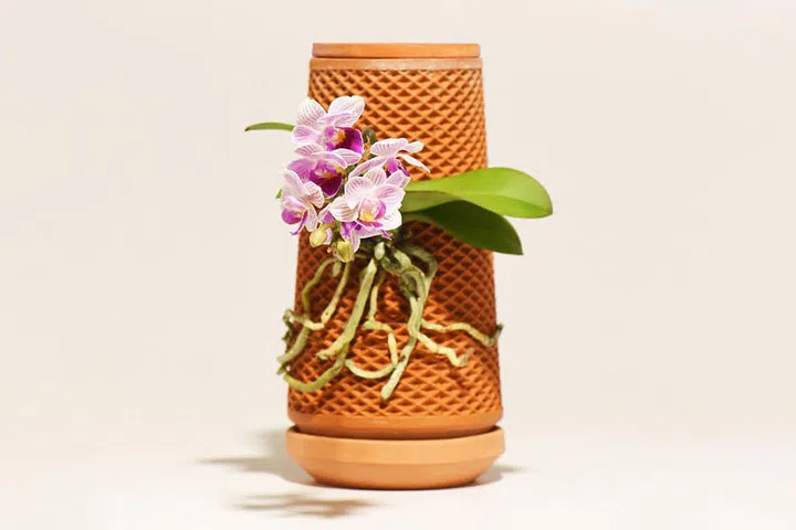 Terraplanter is made with proprietary porous ceramic that diffuses water and allows plant to grow directly on its surface - no dirt involved, simply add water.