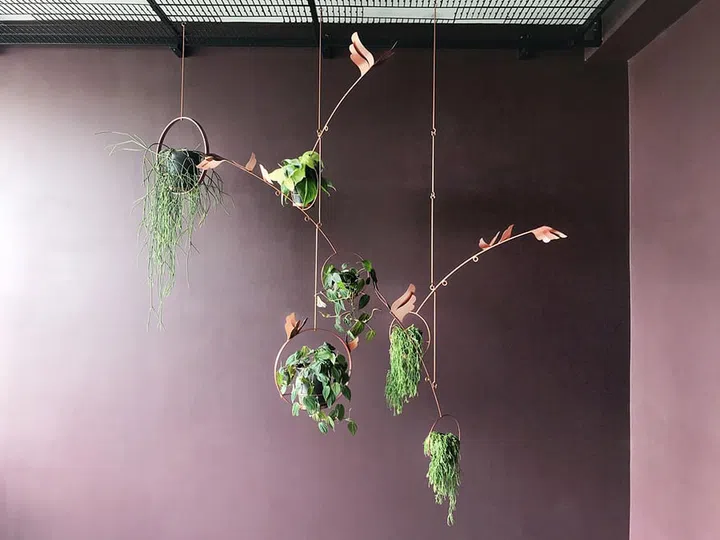 The hangers display houseplants in a sophisticated way like an art installation that will sway and move as they hang. They are suitable to display potted plants, vines and air plants, and are available in three finishes: matt black, glossy white and copper.
