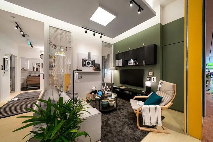 Modelled after a three-room HDB flat, the 65 sq m studio offers a range of packages with renovation and construction services, Ikea furniture, furnishings and In-store technology for personalised interiors, changing products and styles to bring their dream homes to life.