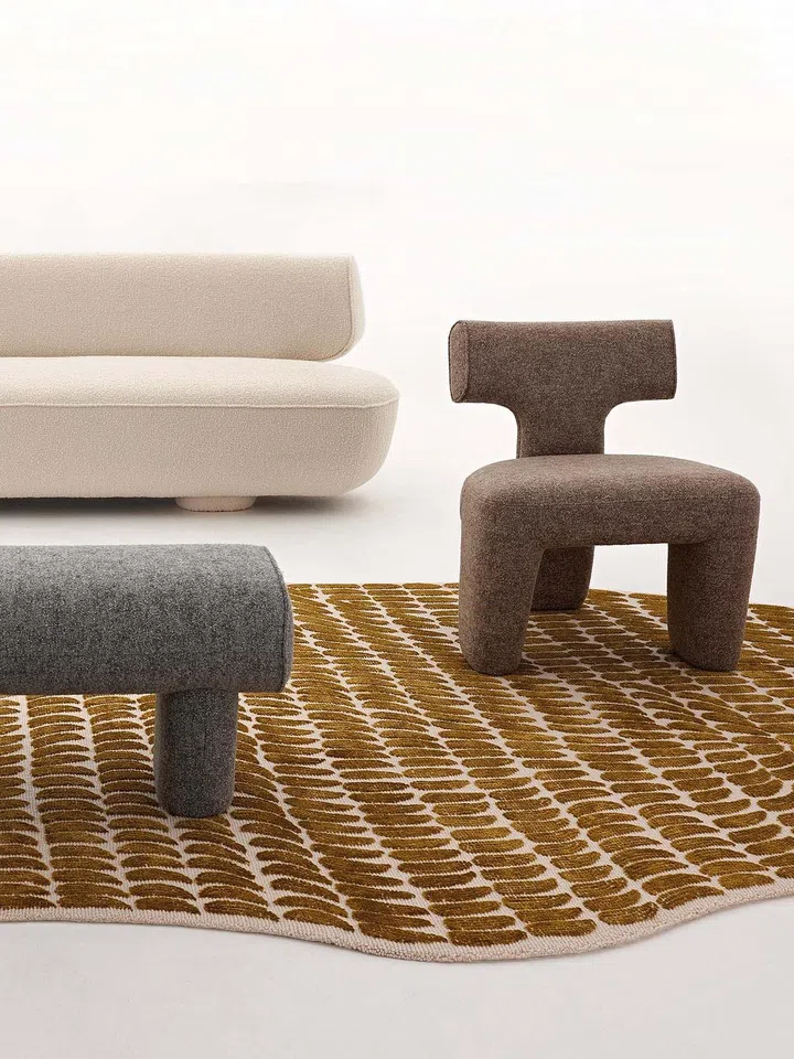 Following a successful first foray into furniture collection, Maison Pierre Frey has launched three more. One of these is Litho, a collection comprising a sofa, a chair, a bench and two rugs by French designer Guillaume Delvigne that feature rounded, organic forms inspired by the notion of collective memory. Each piece in the collection is distinct, and together they create a dreamlike space that is both poetic and friendly.