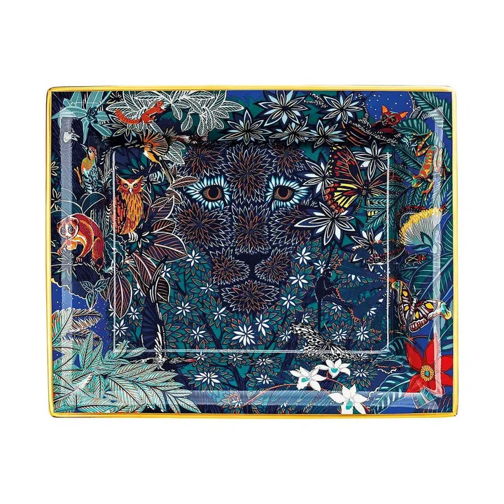 She stopped by Gardens by the Bay and Botanical Gardens during her visit to Singapore in 2016, and the result is Wild Singapore, an exuberant face of a lion formed by a gestalt of flora. This artwork is now available on a porcelain change tray that’s included in Hermes’ Spring-Summer 2021 Objets Collection.