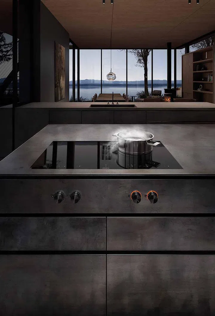 Do away with the conventional kitchen hood with the help of the ultra-sleek Flex induction cooktop with integrated ventilation system 400 series from Gaggenau.
