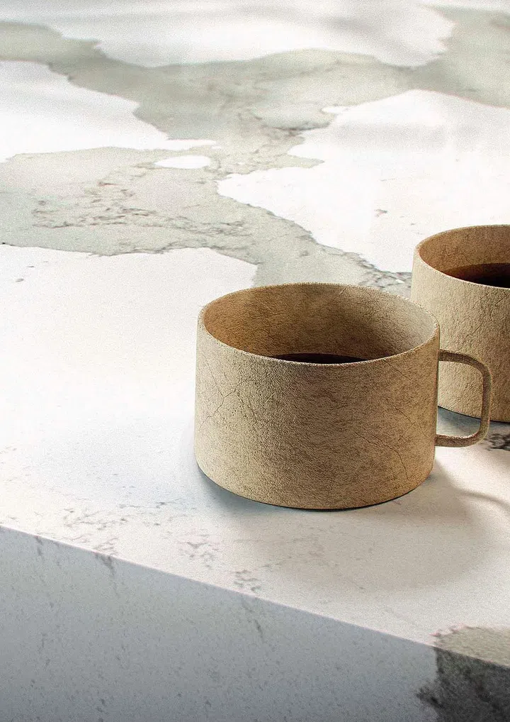 Want to add some warmth? The 5114 Calacatta Maximus (pictured) combines a pure white marble-inspired base with warm neutrals and copper veins, while 5222 Adamina features a soft peachy undertone inspired by sandstone.