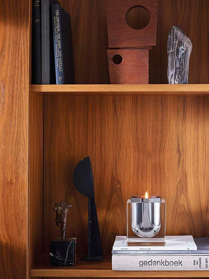 Known for luxury furniture and lighting design, British designer Lee Broom has launched his debut collection of scented candles. These feature an elegant cubist shape handcrafted in crystal, within which sits a recyclable aluminium vessel in polished gunmetal or gold.