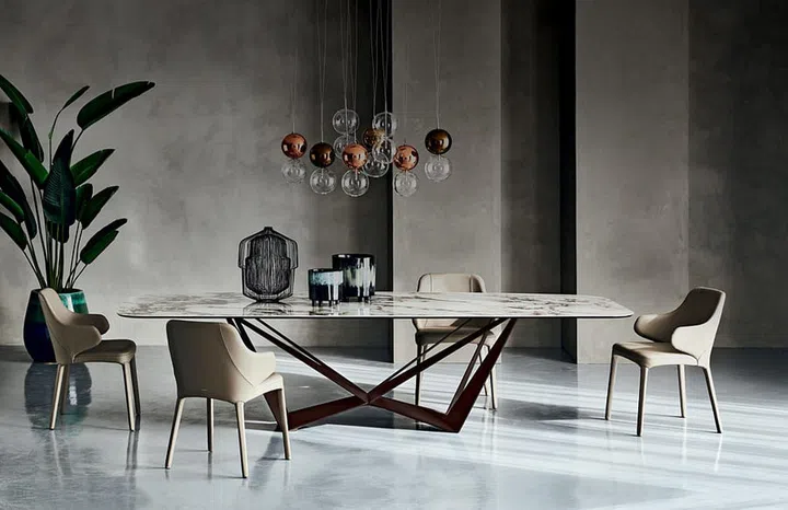 With its thin glass top and sculptural base, the Skorpio table from Cattelan Italia is both a functional piece of furniture and an artwork. This year, the brand has updated the Skorpio family with new top finishes called Keramik with exquisite marbled patterns on glass surfaces.